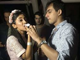 Prerna brings the cake trolly and Virika cut the cake and feed each other.