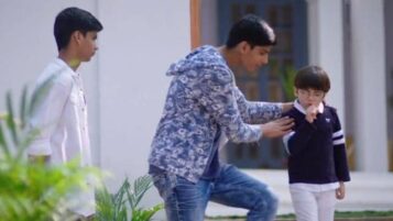 Luv and Kush: Arrey early morning no fights and tears. Kids are getting late for school. Luv picks up Kairav in his arms