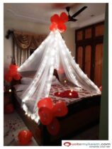 The room was decorated in a very amazing and romantic decoration that could be ready to welcome the new couple.