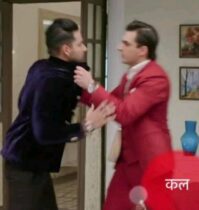 Suddenly Kartik wakes up and comes out and shouts holding naksh’s collar..